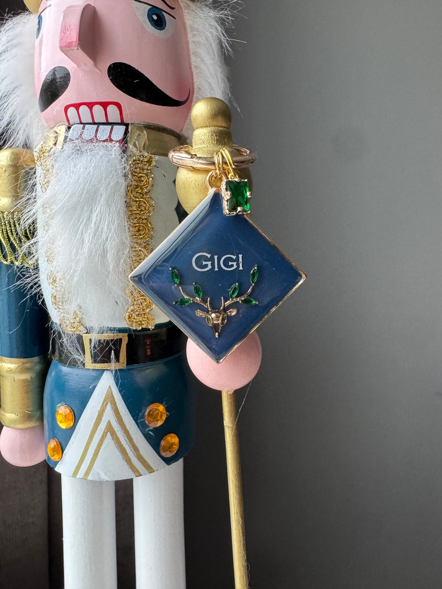 A dainty baguette-shaped gemstone adding an elegant color and contrast to your ID tags.