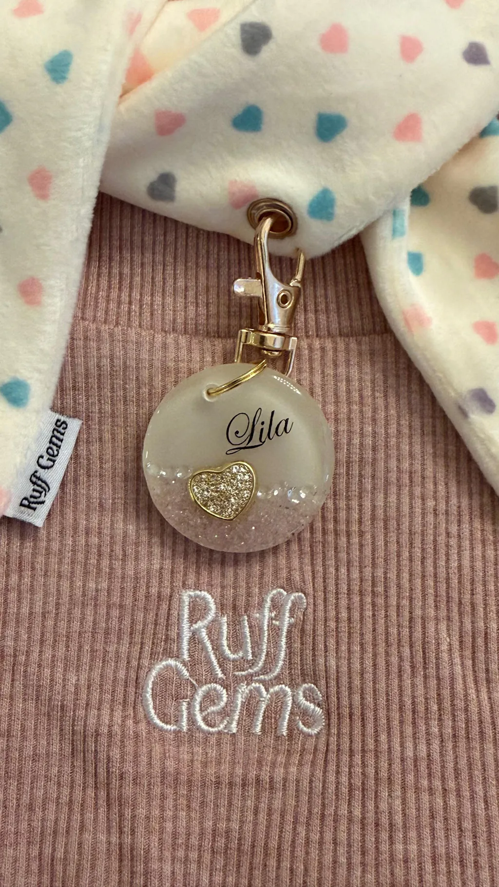 Absolutely obsessed with this beautiful tag! The quality, sparkle, and personalization are perfection. I love how elegant it feels. It will absolutely look adorable on Lila. Thanks Donna! 🫶🏻